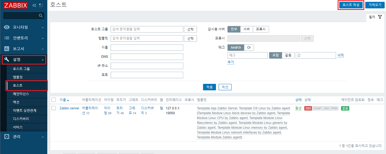 zabbix server 설정