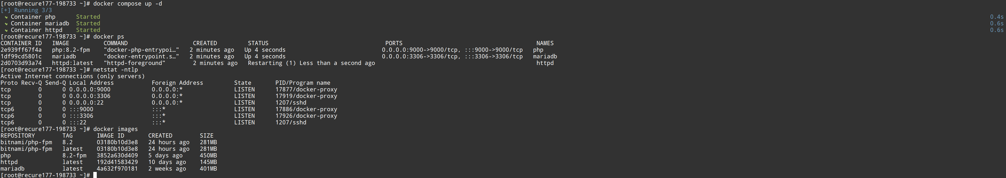 tcp 0 0 0.0.0.0:3306 0.0.0.0:* LISTEN 8200/docker-proxy