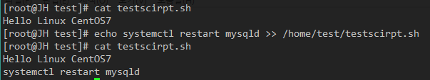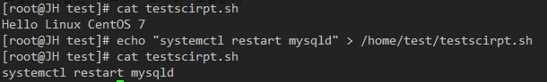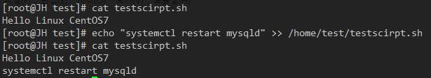 ex3) echo systemctl restart mysqld >> /home/test/testscirpt.sh