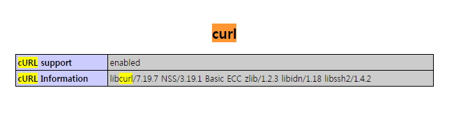 시 PHP INFO 화면에서 변경된 CURL 을 확인해보자
