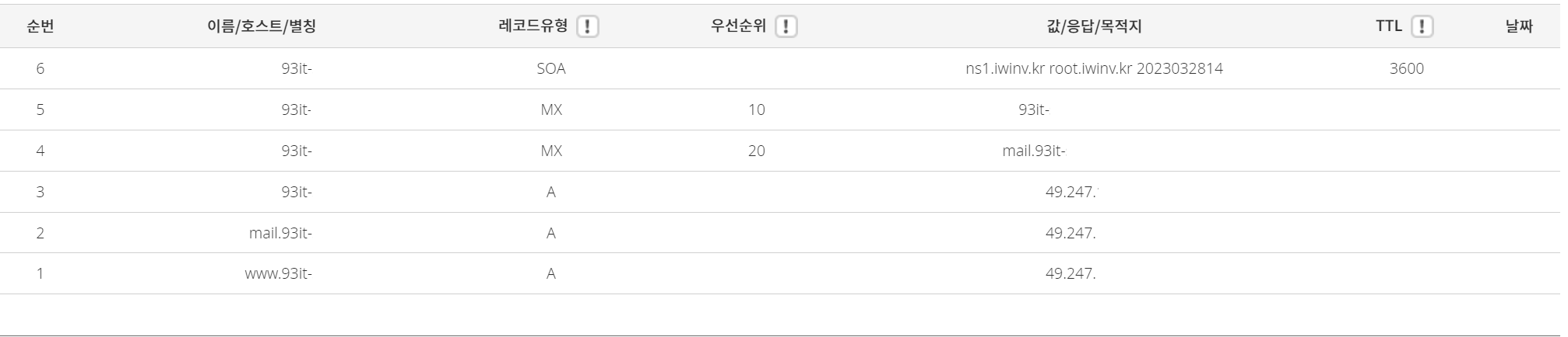 mail.test.co.kr / A / / 123.123.123.123