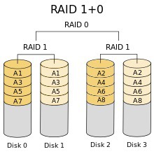 RAID 0+1보단 RAID 1+0이 더 많이 쓰인다. RAID 1과 RAID 0을 결합한 이 구성은 RAID 1보다 높은 성능을 제공하지만 추가 비용이 든다. RAID 1+0에서는 데이터가 미러링되고 미러가 스트라이핑 되기 때문이다.