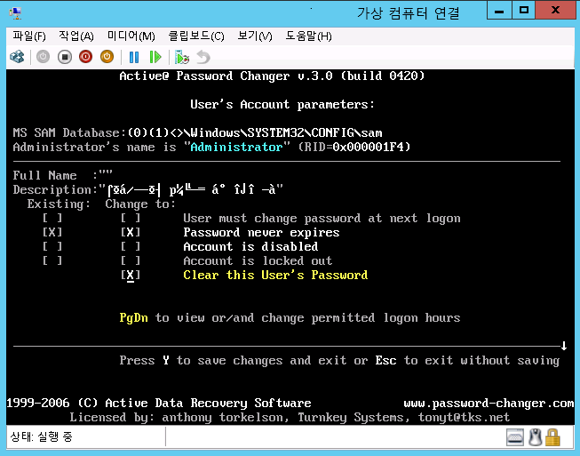 8. Y를 눌러주고 기다린후 Esc로 빠져나간뒤 리부팅을 진행하면 패스워드가 초기화되고 부팅시 바로 로그인이 진행됩니다. 정상적으로 로그인이 되었다면 패스워드를 보안을 위해 빠르게 변경해주세요.