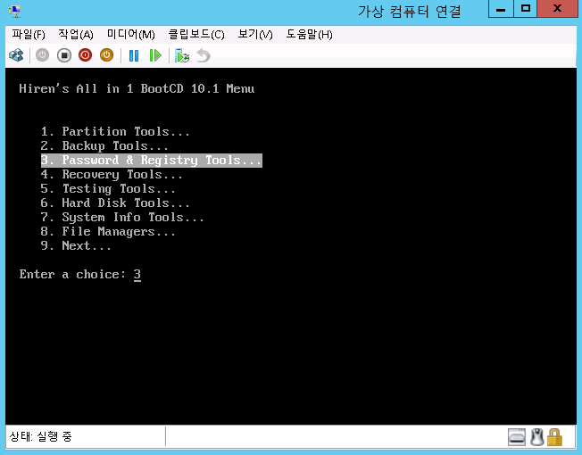 2. Enter a choice: 에서 3번인 Password & Registry Tools…를 선택하고 엔터를 누릅니다.