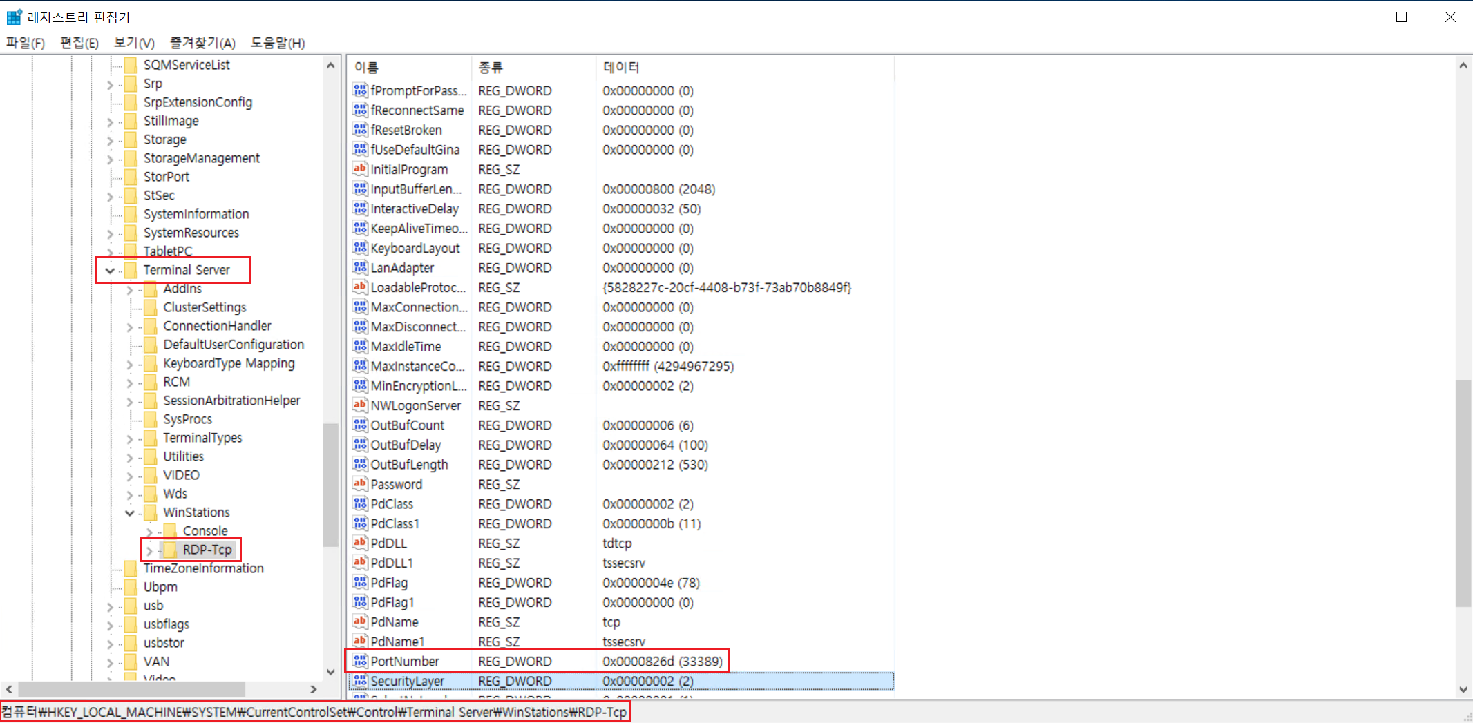저는 3389 포트를 33889 포트로 변경해보도록 하겠습니다.