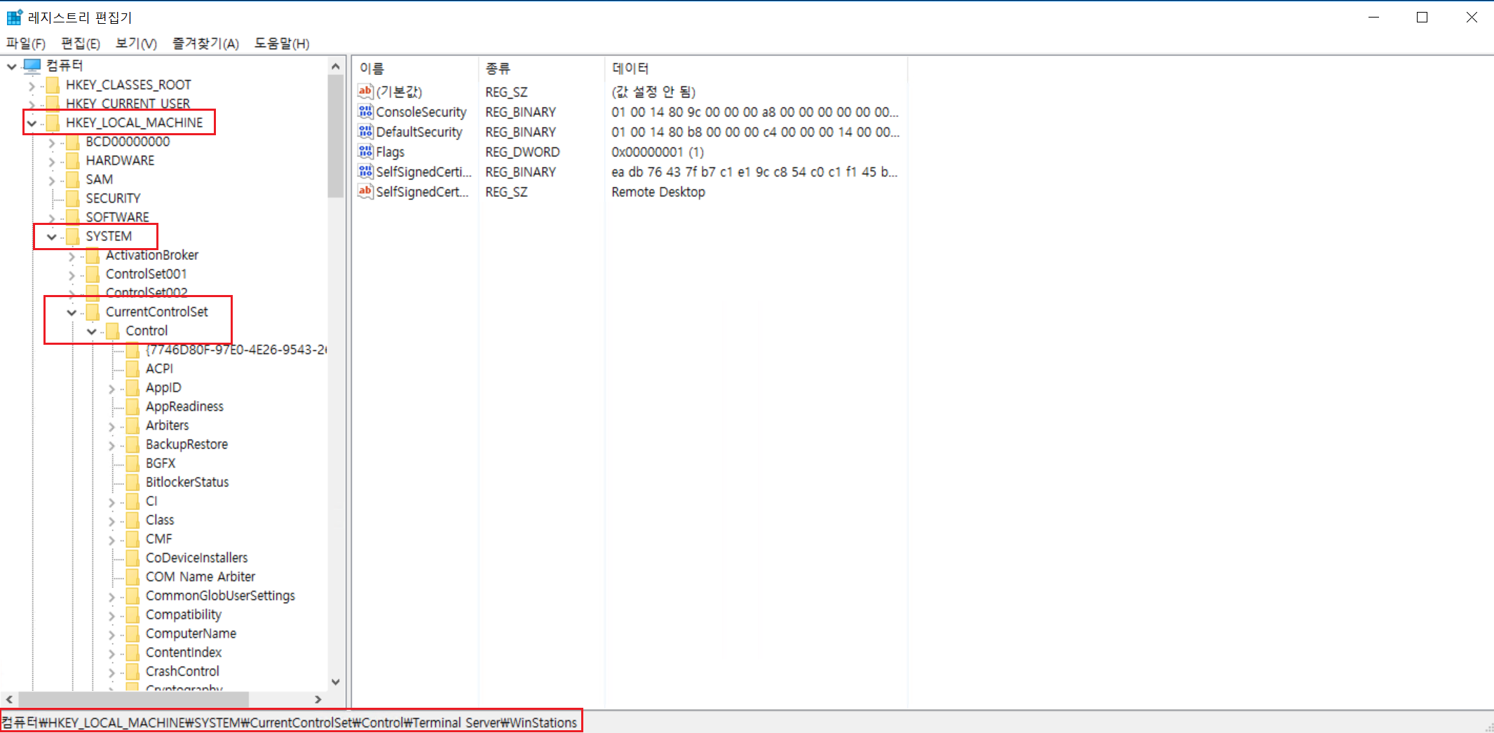 HKEY_LOCAL_MACHINE\SYSTEM\CurrentControlSet\Control\Terminal Server\WinStations\RDP-Tcp