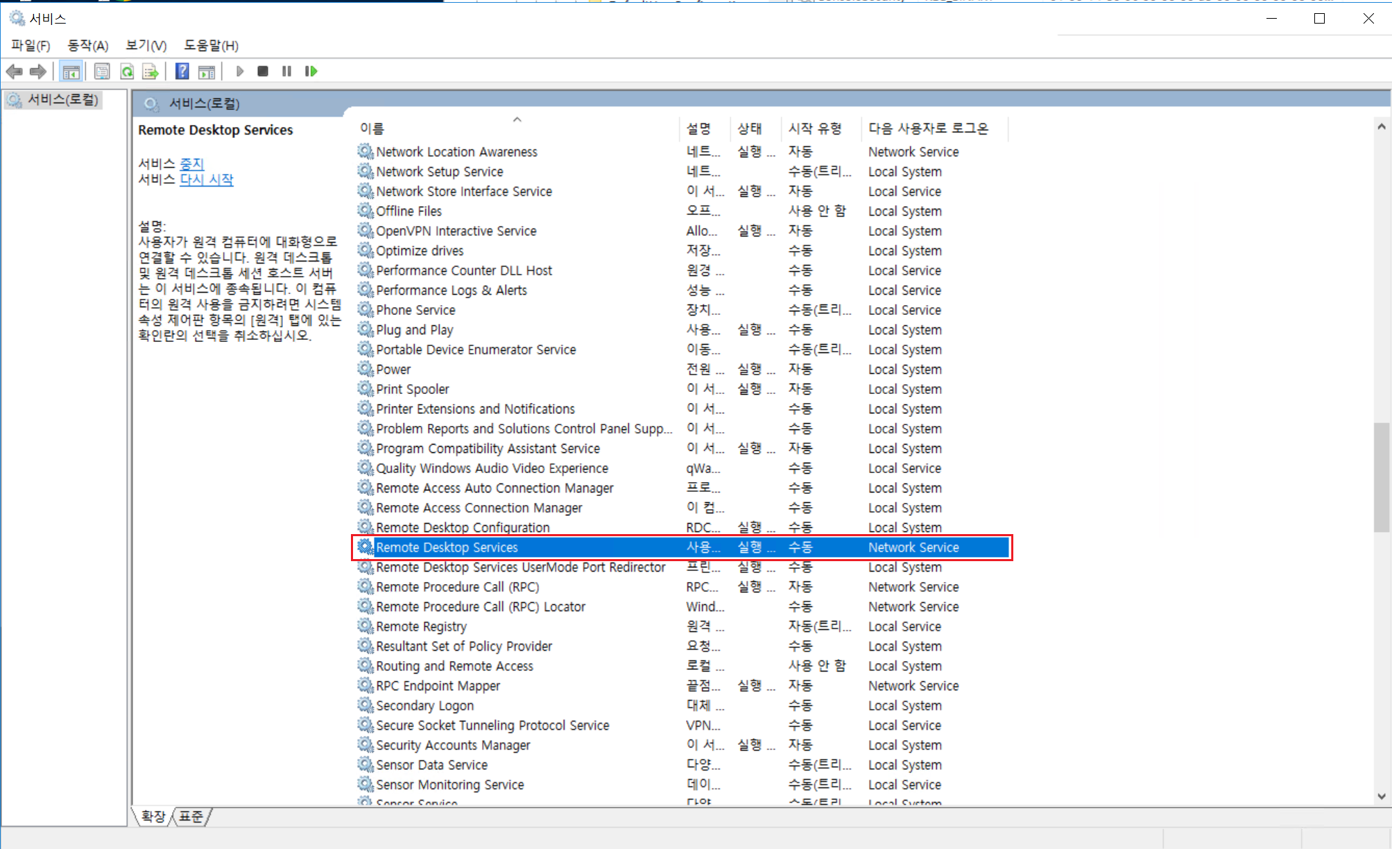 3. 원격 데스크톱 서비스 재시작