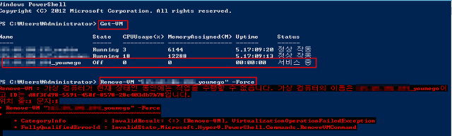 1. powershell 켜고, Get-VM을 치면, 현재 서비스중인 VM이 나오게 됩니다.