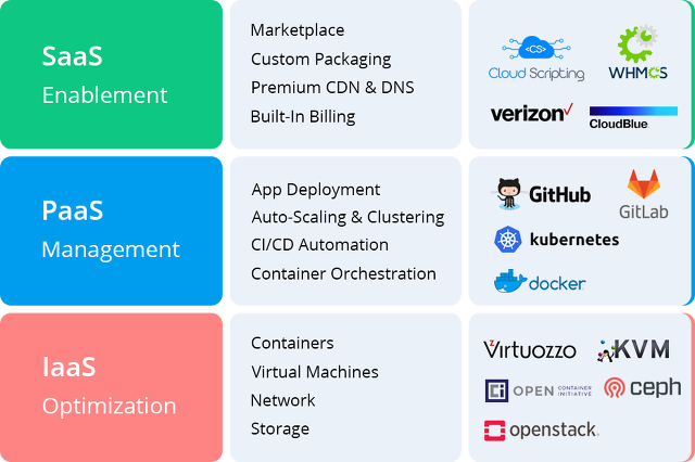 | PaaS | AWS Elastic Beanstalk, Windows Azure, Heroku, Force.com, Google App Engine, Apache Stratos, OpenShift |