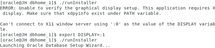 [oracle@JH dbhome_1]$ export DISPLAY=:1
