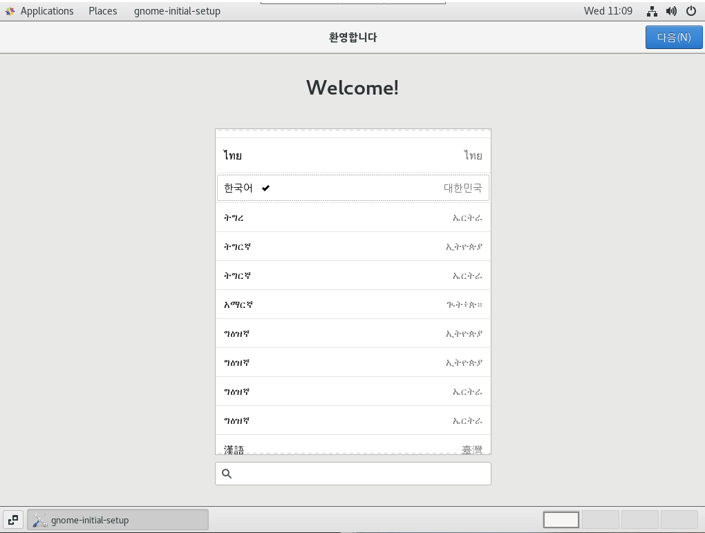처음 실행하면 아래와 같은 화면이 나옵니다. 한국어를 누르고 다음을 누릅니다.
