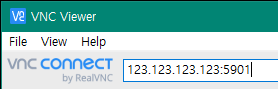 현재 컴퓨터에서 VNC Viewer를 설치하여 실행하여 접속합니다. 5901포트로 VNC 접속합니다.