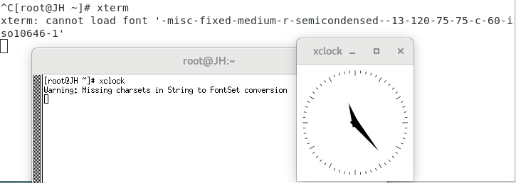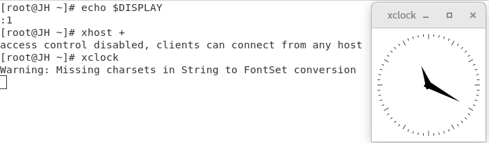 [root@JH ~]# xclock (이러면 시계가 뜹니다. x를 눌러 닫는다. 또는 ctrl+c 입력)