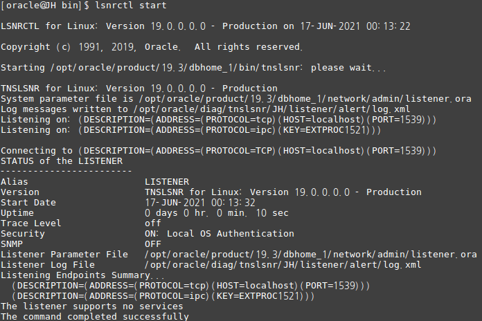오라클 인스턴스, 오라클 리스너 실행 및 재시작