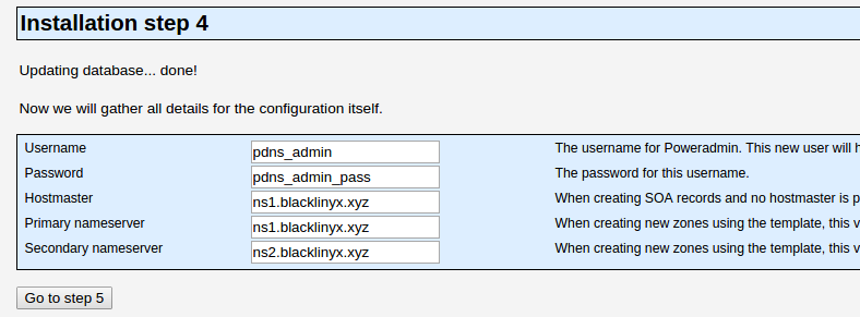 어드민의 계정정보를 입력하고, 1차 2차 네임서버를 입력해주고 다음으로 진행합니다.