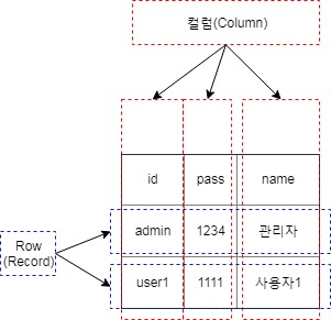 테이블에 저장되는 항목을 컬럼으로 구분한다..